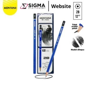Pensil Tulis Montana MT-2B01-B adalah pensil berkualitas yang dirancang untuk kebutuhan menulis, menggambar, maupun membuat sketsa. Dilengkapi dengan tingkat kekerasan 2B, pensil ini menghasilkan tulisan yang lebih hitam, halus, dan mudah digunakan. Pensil Montana dibuat dengan bahan kayu pilihan yang mudah diraut serta memiliki batang yang nyaman digenggam saat digunakan dalam waktu lama. Cocok digunakan oleh pelajar, mahasiswa, maupun pekerja kantor untuk berbagai aktivitas menulis sehari-hari.